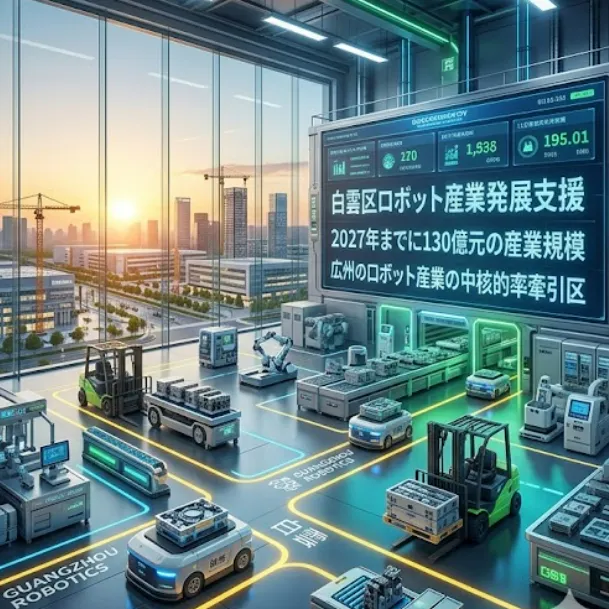 報道によると、白雲区は2027年までに口ボット産業の総規模を130億元に拡大、産業規模の年平均成長率を20%以上とし、広州の口ボット産業の中核的率牽引区,となることを目指している。各領域を牽引する企業を白雲区へ誘致し、広州(白雲)ロボット産業パークの建設を加連させるという。