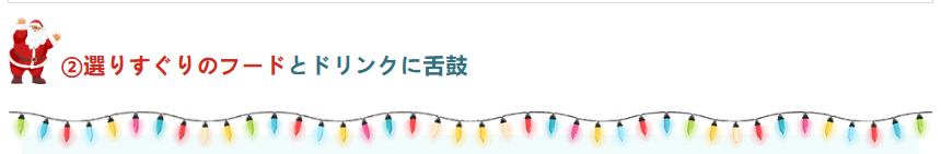 フードの陳列コーナーには、クリスマスイベントにぴったりの美味しい料理がずらりと並び、会場に入った瞬間から食欲をそそります。なかでも牛肉料理は大人気。ひと口頬張るたびに、参加者たちの胃袋をがっちりとつかんでいました。