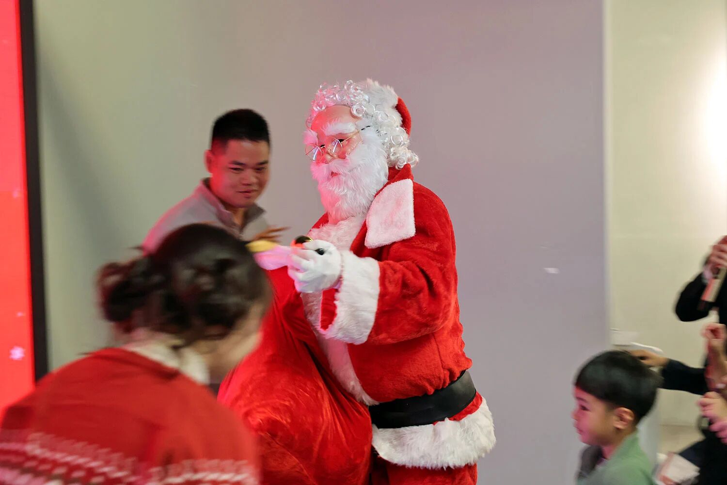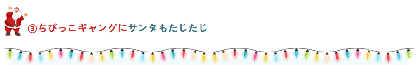 プレゼントに大興奮した子どもたちは、まるで「ちびっこギャング」へと覚醒したかのように、サンタさんを追いかけ回し、会場は笑い声でいっぱいになりました。