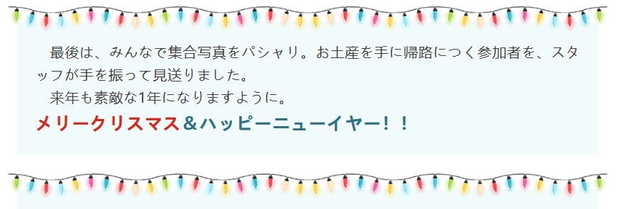 今回は、イベント当日に撮影された写真を眺めながら、あの楽しかったクリスマスの思い出を、あらためて振り返ってみたいと思います。