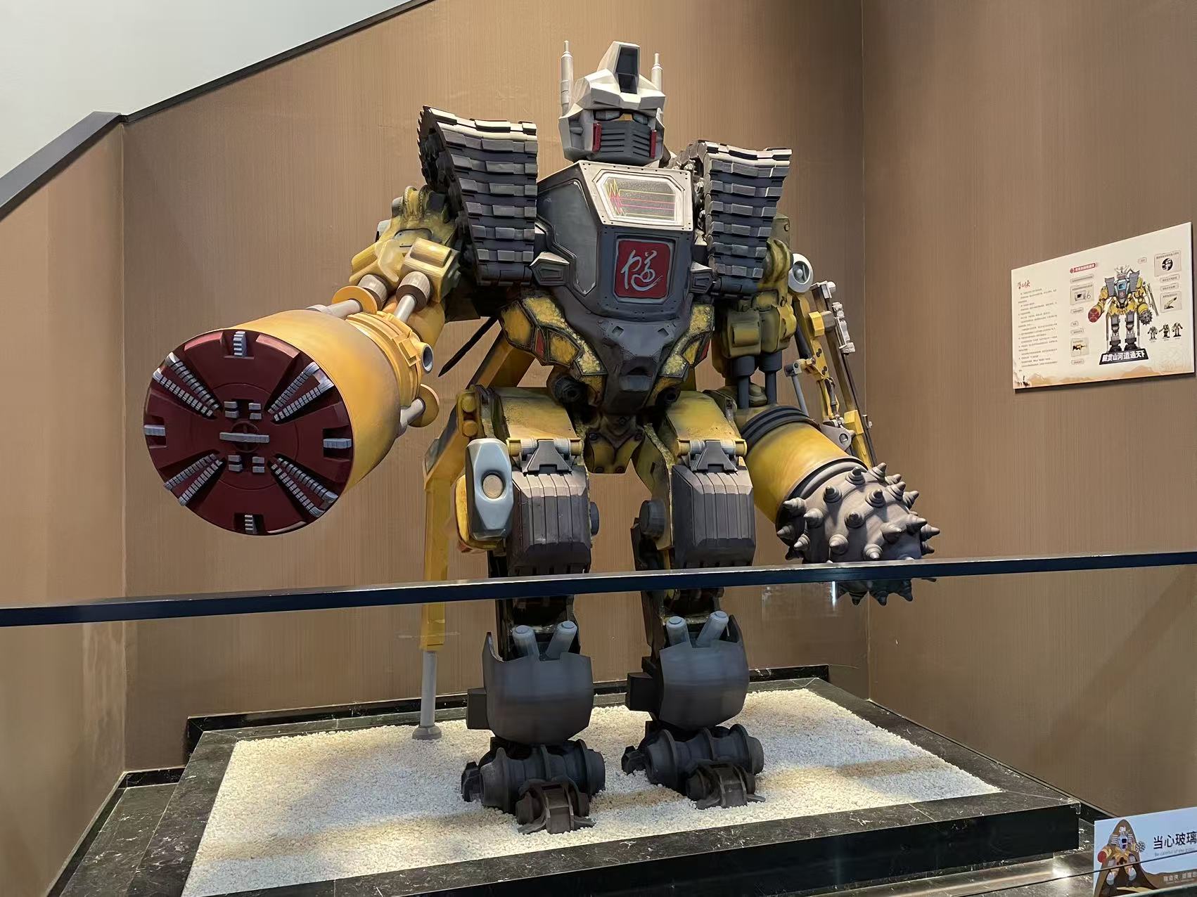 駅から博物館までは近く、出口から徒歩5分ほど。 博物館は中国鉄道グループ傘下の「中鉄隧道有限公司」の敷地内にあり、入口にはトランスフォーマーを思わせる巨大ロボットが鎮座している。ここが正面玄関だ。