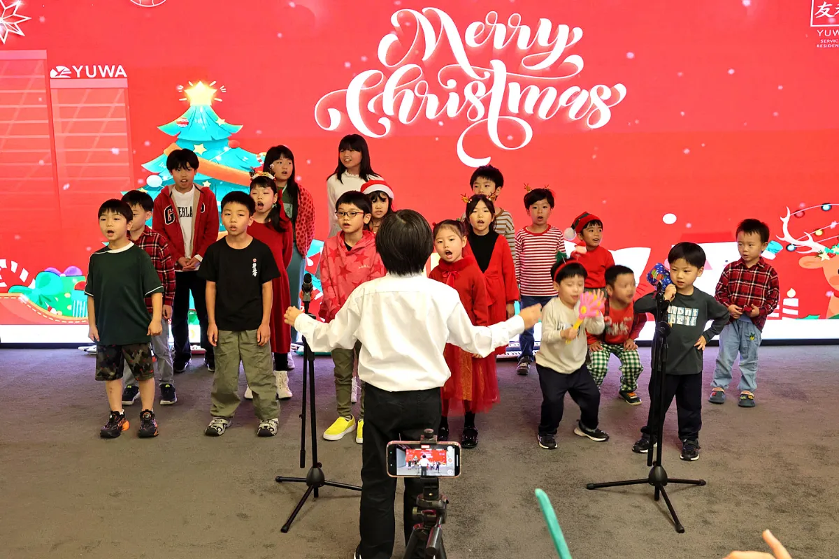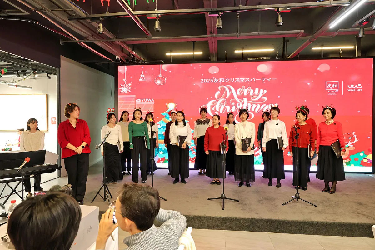 トップバッターを飾ったのは、広州市内で活動を続ける合唱団・美女(Meinv)の皆さん。「小さな世界」「ハナミズキ」「サンタが街にやって来る」を美しいハーモニーで披露し、会場は一気に温かな空気に包まれました。透き通る歌声が、参加者の心に深い感動を届けました。