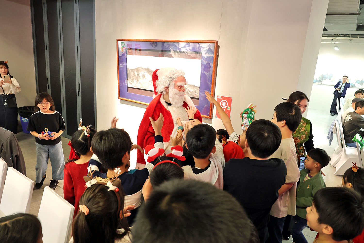 プレゼントに大興奮した子どもたちは、まるで「ちびっこギャング」へと覚醒したかのように、サンタさんを追いかけ回し、会場は笑い声でいっぱいになりました。逃げるサンタ、追いかける子どもたち。その微笑ましくも賑やかな光景に、大人たちからも思わず笑顔がこぼれます。