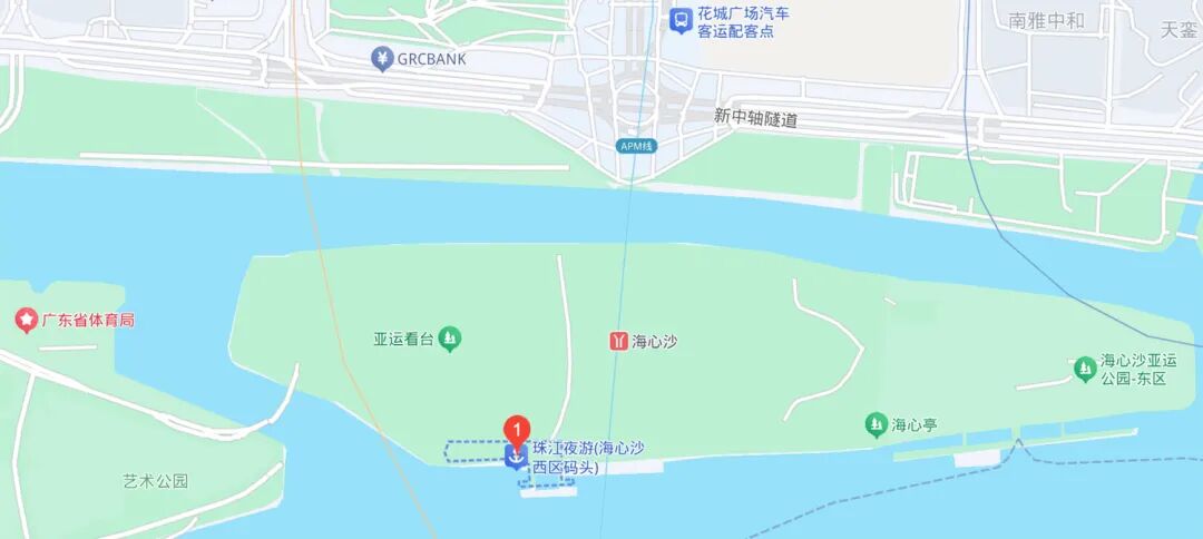 ⑪今回のテーマ船の鵝潭印象号とコカ・コーラ号は「海心沙西区碼頭」(天河区)から出港。海心沙から南に徒歩2分
