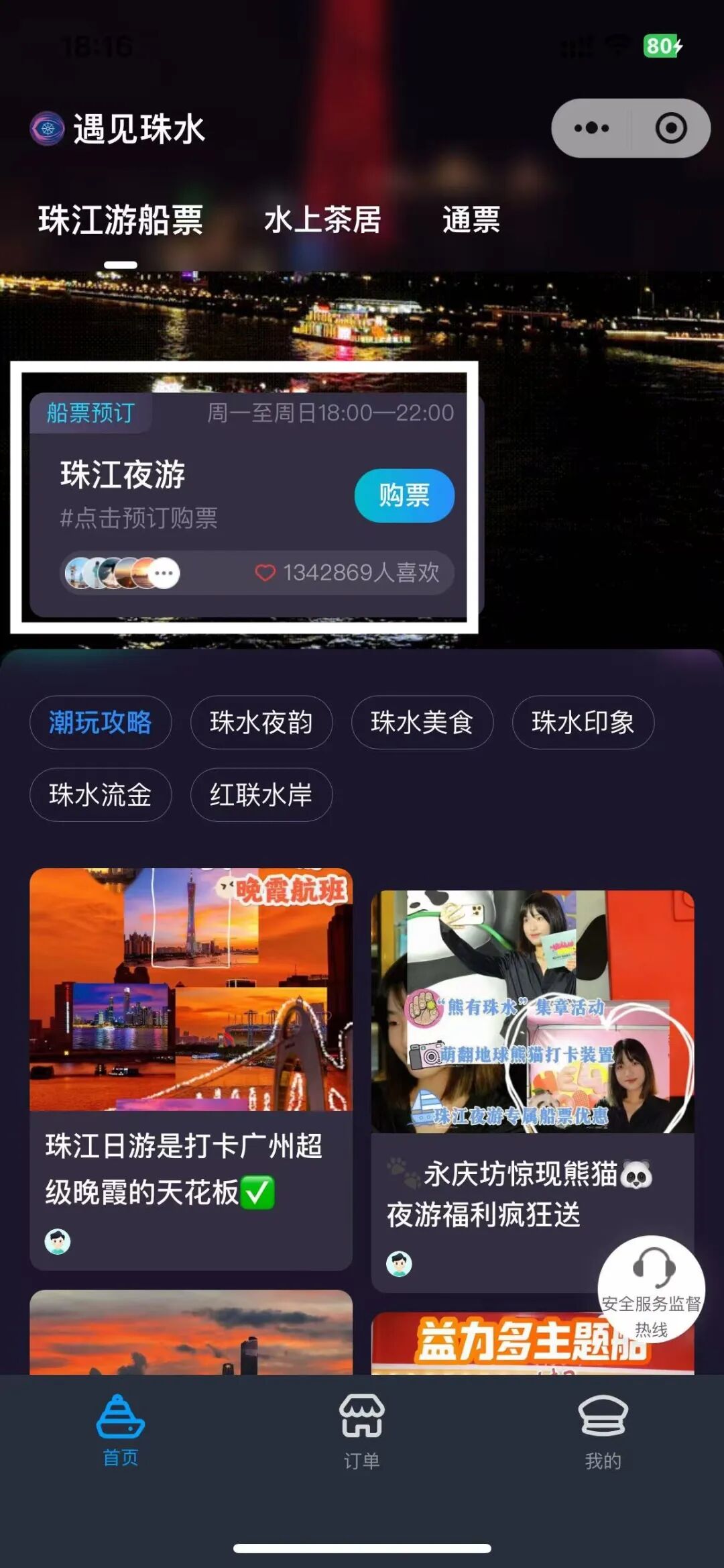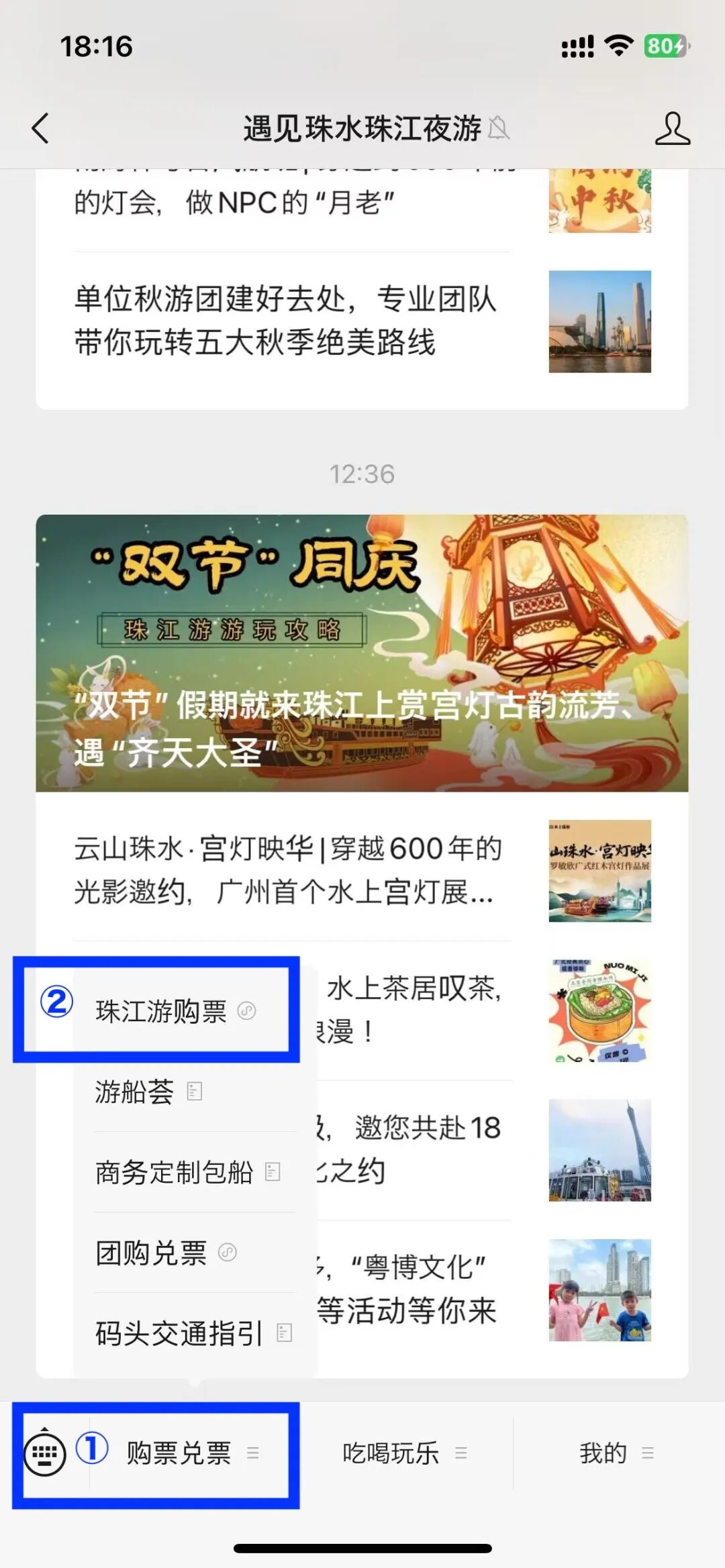②画面左下の「購票総票」を押して「珠江游購票」選択