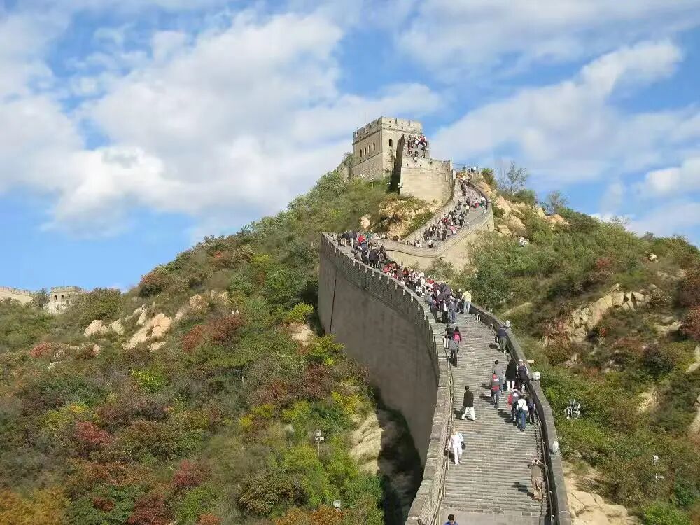 その起源ははるか春秋・戦国時代にさかのぼり、当時の諸侯国が互いを防御するために築いた城壁が始まりとされています。中国を統一した秦の始皇帝がこれらの城壁をつなぎ合わせ、長大な防御線を形成したことで、今日の長城の原型が整いました。八達嶺長城では、入口から左右どちらの方向にも登ることができます。一般に右側を「女坂」、左側を「男坂」と呼び、勾配の角度に違いがあります。右の「女坂」は比較的登りやすく、四つ目の城楼まで進むと、山々を縫うように果てしなく続く長城の雄大な姿を望むことができます。