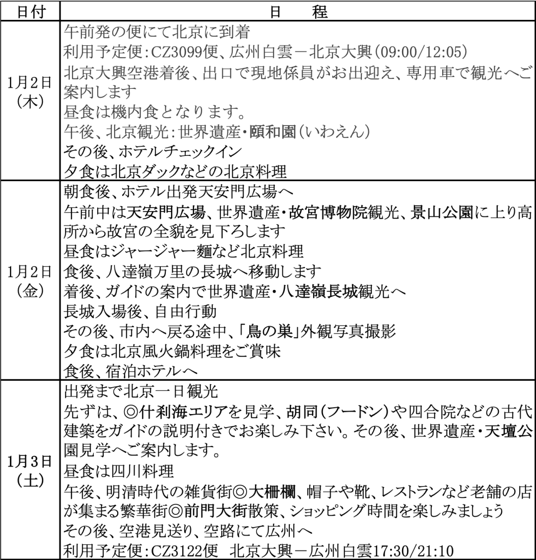 【年末年始催行】世界遺産満喫・北京2泊3日(故宮博物院観光確約)2025.11.06