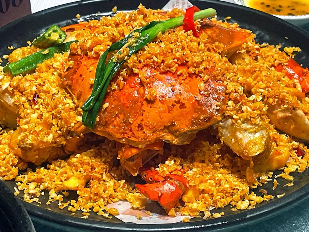 肉厚ワタリガニを干焗で調理した碼頭干焗台山肉蟹。結構ピリッとします