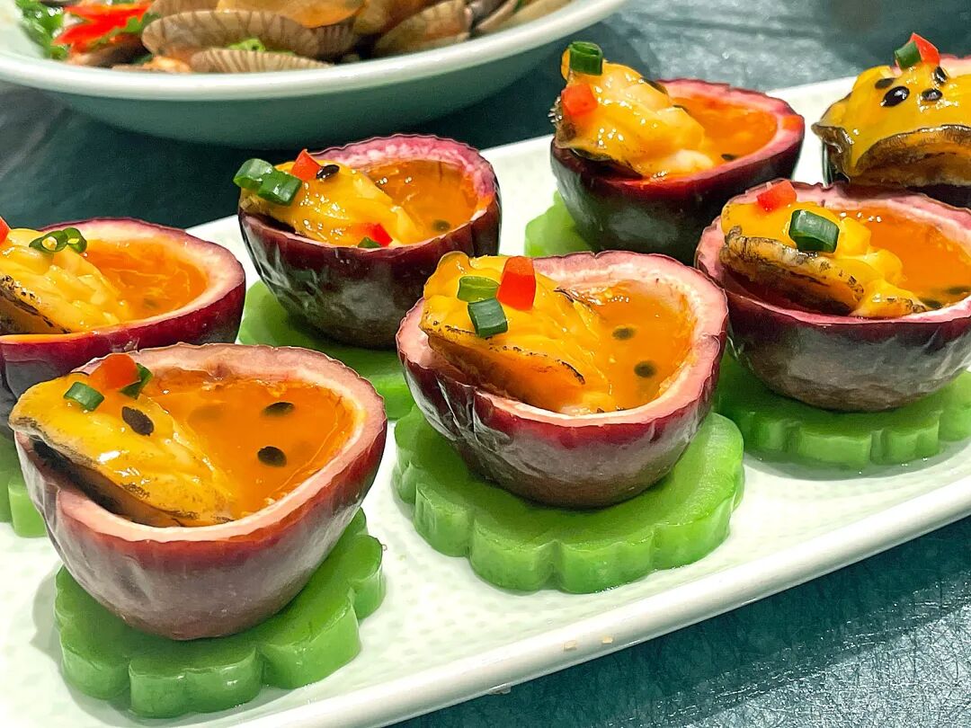 アワビをパッションフルーツに漬けて蒸し上げた百香果蒸鮑魚(78元)は、甘酸っぱい仕上がりで、コリコリとしたアワビの食感と果物の酸味が意外なほどマッチする。広東料理の海鮮に欠かせないニンニクを使った蒸し牡蠣・嬾生蠣(7個91元)や、ハタを清蒸に仕立てた游龍蒸珍珠老虎班(1尾250元)も鮮度が良く、どれも満足度が高い。