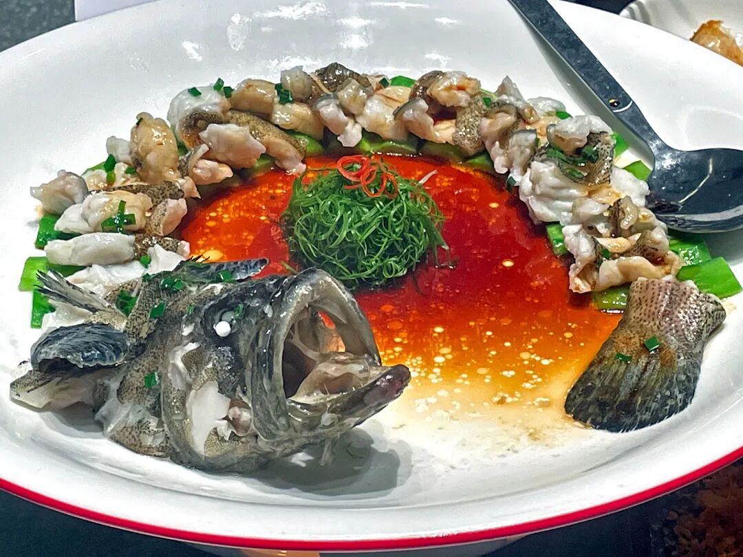 ハタを清蒸にした游龍蒸珍珠老虎班