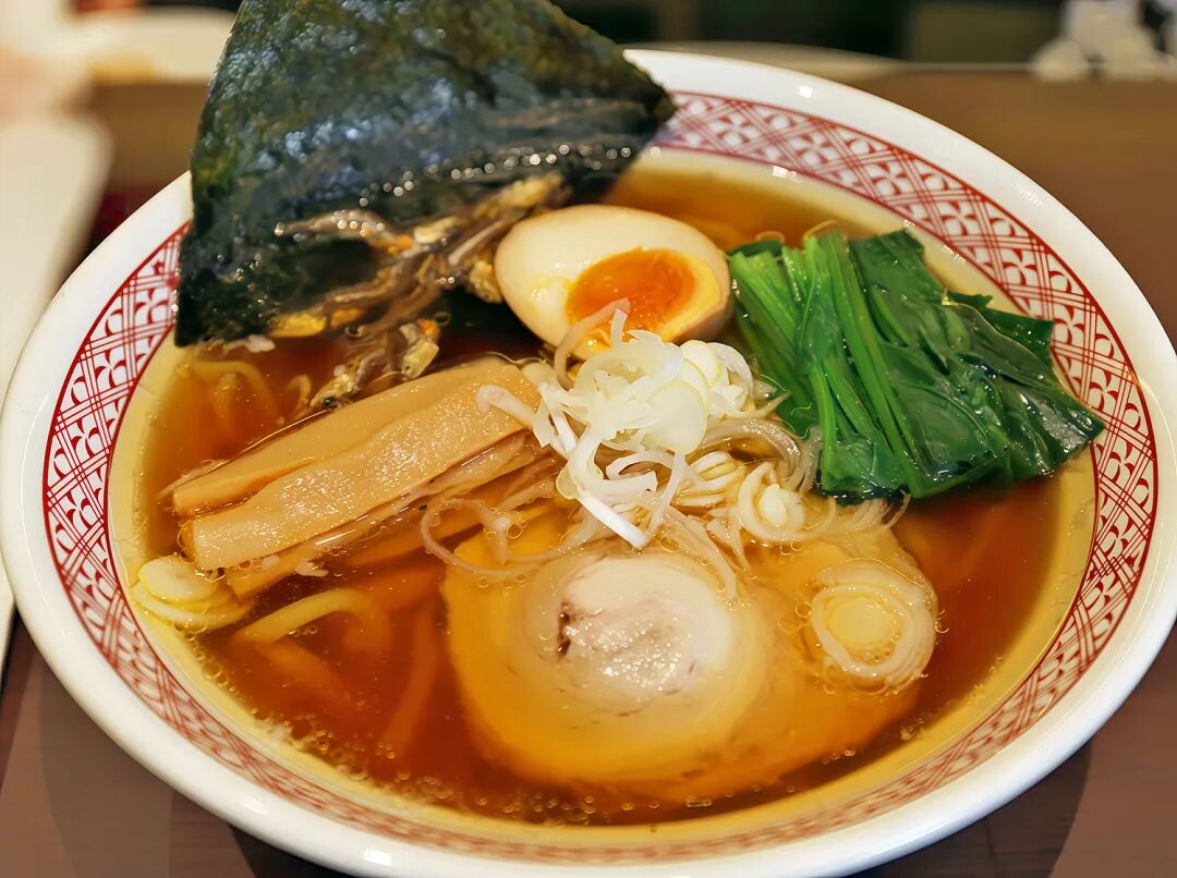 煮干出汁が効いている同店特製の醤油ラーメン(58元)