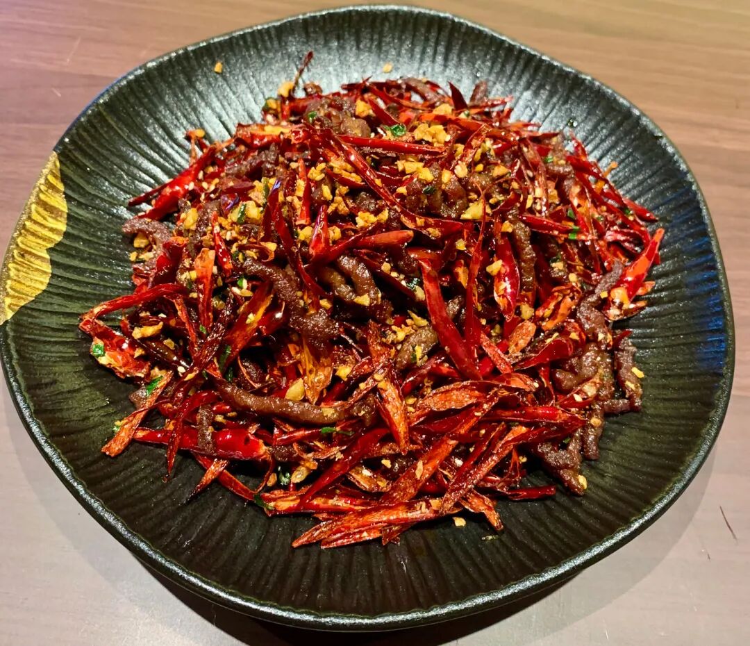 四川出身オーナーがお薦めする四川風牛肉独占秘爆炒め(88元)