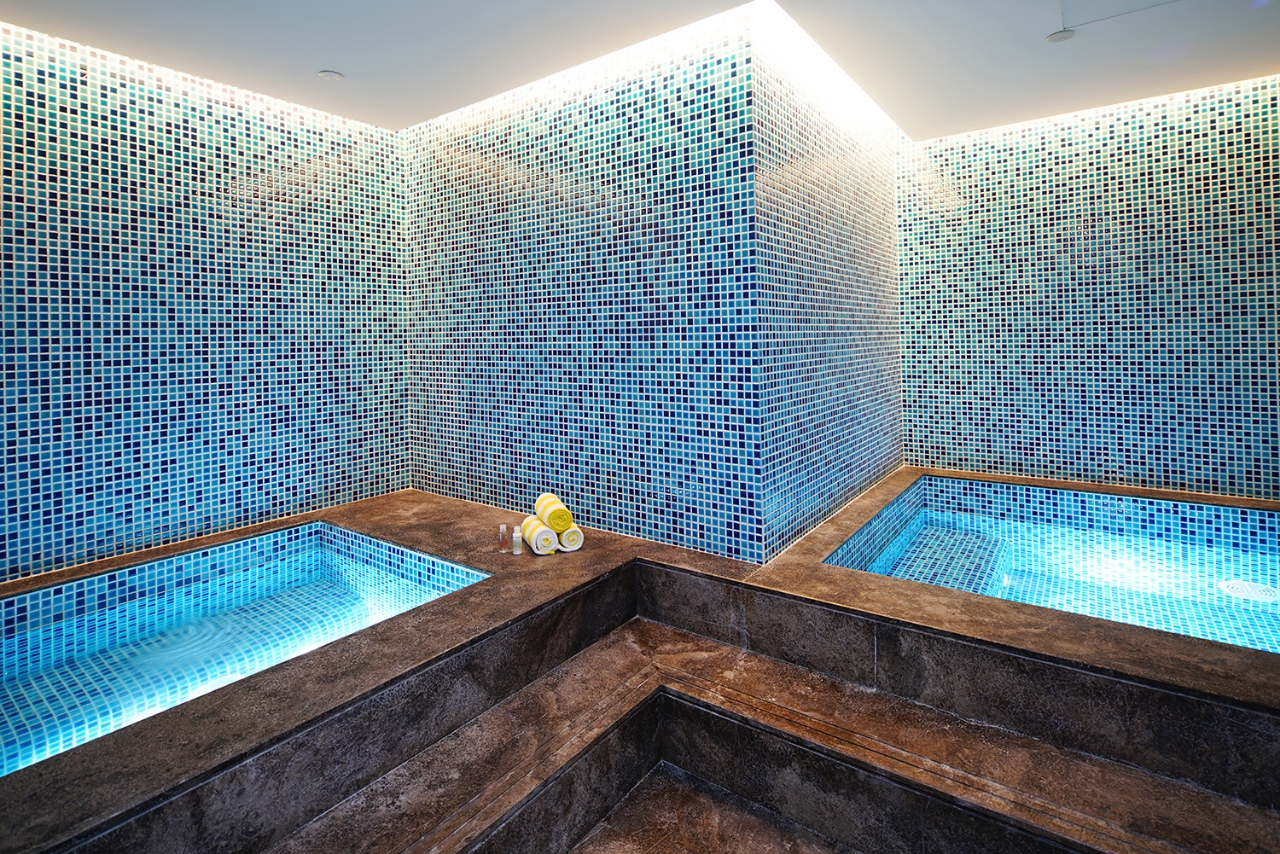 7階には中庭のレストランがあり、ここで朝食ビュッフェが堪能できます。また屋上のプールから見渡せる景色は絶景です(スチームサウナ完備)