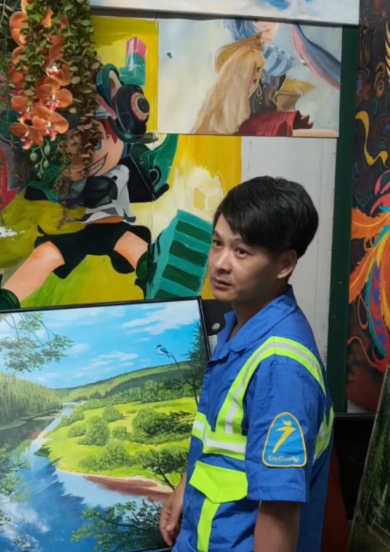 这位艺术家名叫罗世跃(42岁),是一名当地的环卫工人。罗世跃自2014年起从事环卫工作,每天早上6点开始,他开车到自己负责的区域收集垃圾,然后运到垃圾处理站。下班后,他脱下工作服,放下清洁工具,拿起画笔,开始创作自己喜欢的图案。