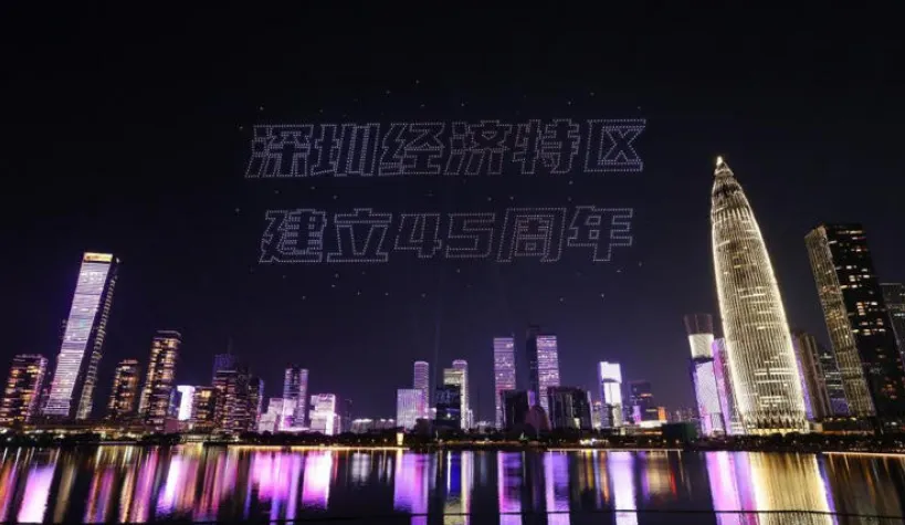 为纪念深圳经济特区成立45周年,深圳市民广场和深圳人才公园举办了无人机灯光秀。市民和游客欣赏了这场科技与艺术相融合的视觉盛宴。
