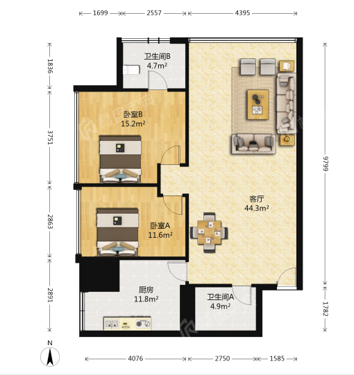 • 【友和不动产严选】君临国际公寓【2 室 2 厅 / 140 平方米】